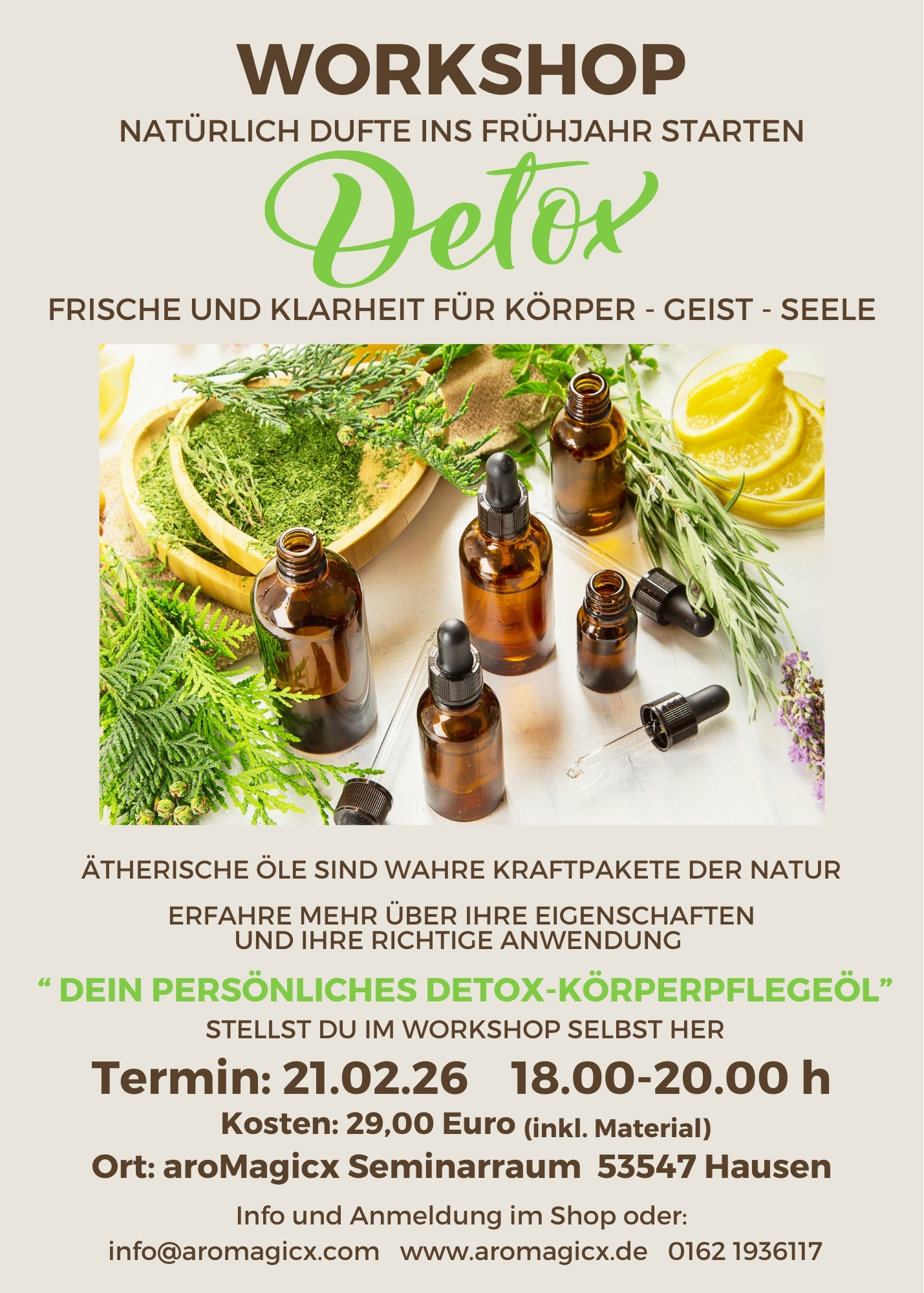 Sollten Sie sich in dieser Zeit bereits angemeldet haben, schicken Sie mir bitte nochmals eine Email an info@aromagicx.com